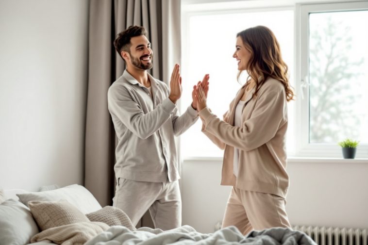Quelques secondes de mouvement suffisent à activer la circulation, dérouiller les articulations et libérer les fameuses endorphines – ces hormones du bonheur. Résultat ? L’énergie afflue, la confusion du réveil s’estompe, l’humeur se met au beau fixe. Pas besoin de performance sportive : une petite mise en route suffit, surtout lorsqu’on s’y met à deux.