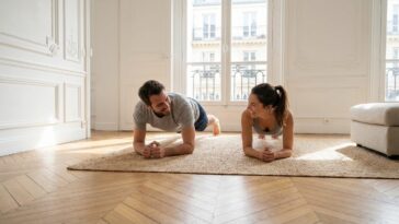 in Forme Le défi “gainage en duo” : 5 minutes par jour pour un ventre plus plat et une complicité retrouvée